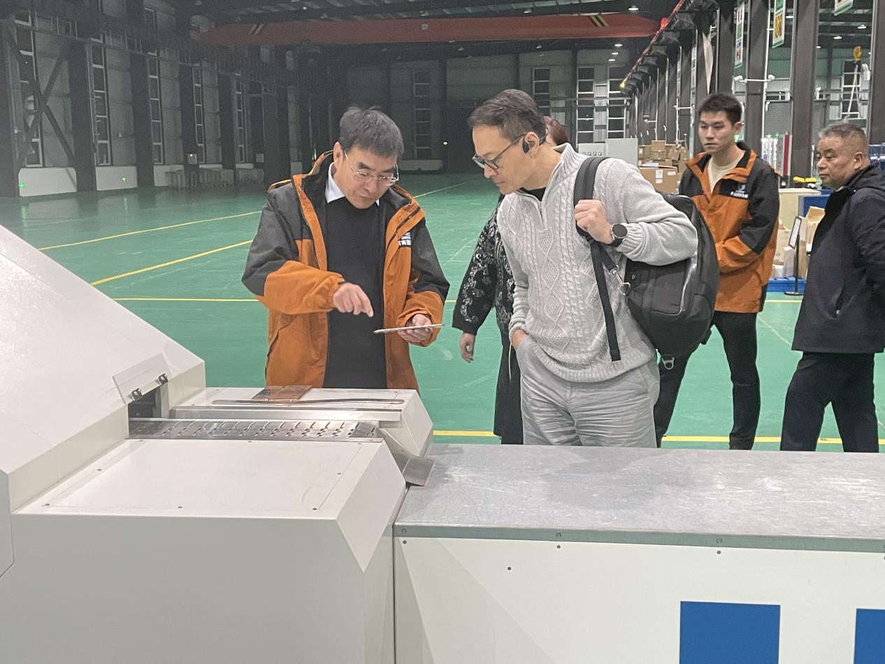接着,来到装配车间进行参观。在装配车间,他们近距离观察了生产线上有条不紊的工作场景。我司总经理梁庆峰详细介绍了装配流程、质量控制体系以及先进的生产设备和技术。我司高度自动化的装配线、严格的质量检测环节以及工人们娴熟的操作技艺,给他们留下了深刻的印象。他们对我司在装配工艺方面的创新举措和精益管理模式表示充分肯定。